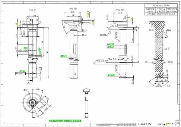 ∅1,6 broca de entrada, herramienta de torneado redondo a 45°, fresa de ranurar de 2 mm, fresa de ranurar de 1 mm, ∅2,8 broca, ∅2,98 escariadores, ∅3 fresa de tope, ∅10 fresa de tope.